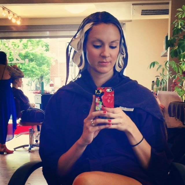 Have any of you made a dramatic hair color change? The last time I did it I was in grad school, and went from my normal blonde to dark brown. I look back at pics from that time in my life and shudder at how terrible I looked! So hopefully, this looks better than that, because that was rough. Rrrough.
